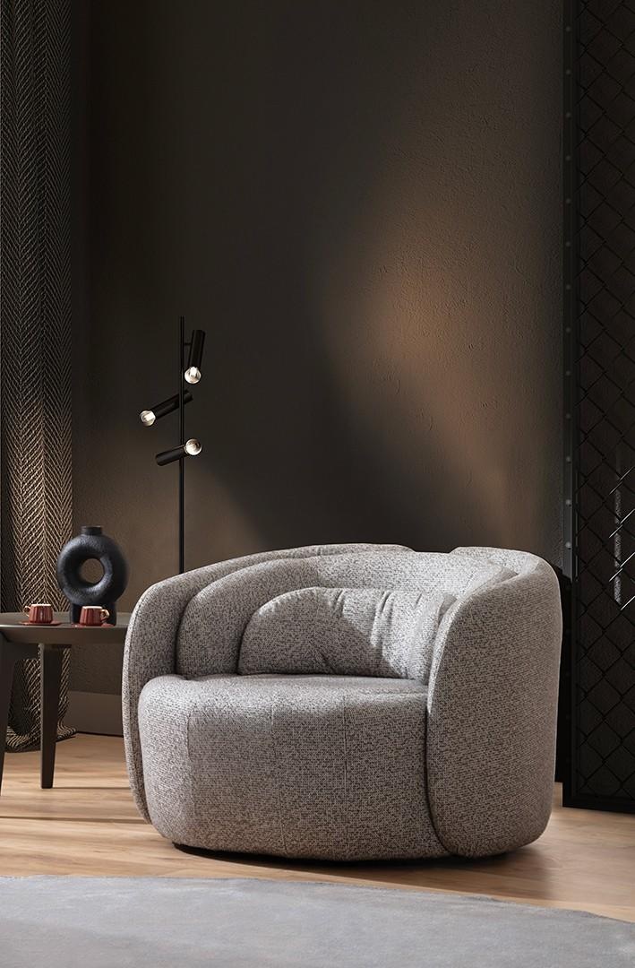 Kruhové relaxačné klubové kreslo, vyrobené z najjemnejšieho sivého polyesteru, predstavuje dokonalú harmonizáciu estetiky a pohodlia. Jeho nadčasový dizajn a elegantné línie sa stávajú stredobodom pozornosti v každom interiéri, pričom poskytujú priestor na odpočinok a relaxáciu. S dôrazom na kvalitu a detail, toto kreslo je výsledkom dvadsaťročnej tradície luxusného nábytku, ktorý transformuje váš domov na exkluzívne útočisko. Ideálne pre tých, ktorí si cenia elegantný životný štýl, ponúka toto kreslo jedinečný zážitok, ktorý prekoná vaše očakávania. Premeňte svoje chvíle oddychu na nezabudnuteľné okamihy s týmto výnimočným kúskom.