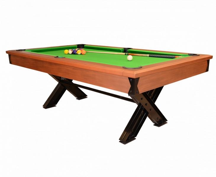 Hnedý drevený biliardový stôl s kovovým rámom a elegantným dizajnom | xlnabytok.sk