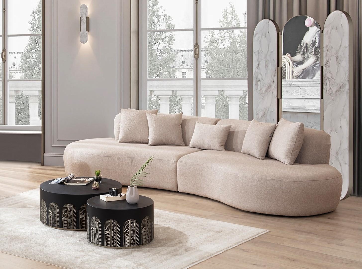 5-dielna súprava pohovky do obývačky, oblečená v jemnej béžovej farbe z kvalitného polyesteru, predstavuje dokonalú harmóniu elegancie a komfortu. Jej nadčasový dizajn, starostlivo prepracované detaily a priestranné sedenie ponúkajú ideálne miesto na oddych a stretnutia s rodinou či priateľmi. Každý kus je zhmotnením luxusu a štýlu, ktorý podčiarkuje exkluzivitu vášho domova. S viac než dvadsaťročnou tradíciou v oblasti luxusného nábytku, táto súprava pohovky predstavuje investíciu do vášho životného štýlu, ktorá zaručí, že váš priestor zostane nadčasový a pôsobivý. Vytvorte si oázu pokoja a krásy, ktorá odráža vašu osobnosť a nároky na kvalitu.