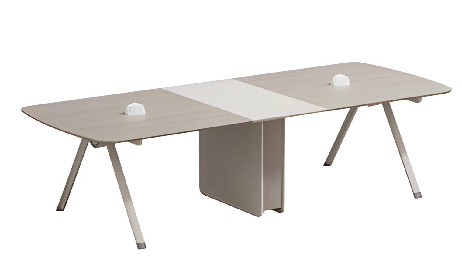 Modulárny stôl na rokovania v béžovej farbe s integrovanou zásuvkou a moderným dizajnom