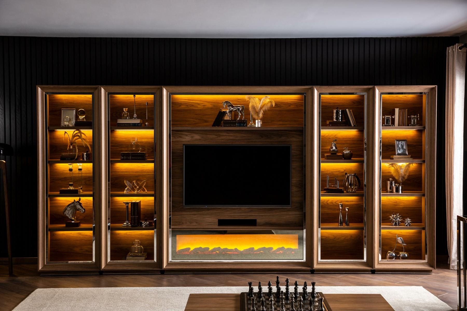 Luxusná stena do obývačky s krbom a konferenčným stolíkom | xlnabytok.sk