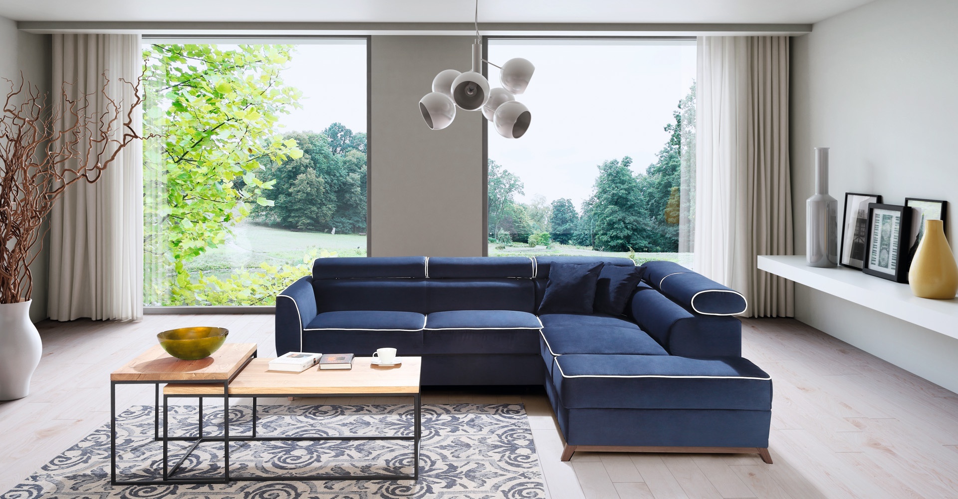 Moderná modrá rohová sedacia súprava predstavuje dokonalú harmonizáciu elegancie a funkčnosti, ktorá obohatí váš interiér. Jej luxusná modrá textília sa nielenže príjemne dotýka pokožky, ale aj vytvára atmosféru sofistikovanosti. S premysleným dizajnom a nadčasovými líniami sa táto sedacia súprava stáva stredobodom pozornosti, ktorý osloví aj tých najnáročnejších. Vyrobená s dôrazom na detail a kvalitu, ponúka komfort, ktorý je neoddeliteľnou súčasťou exkluzívneho životného štýlu. Vytvorte si domov, ktorý odráža vašu osobnosť a štýl, a vychutnajte si každý okamih v spoločnosti tejto výnimočnej sedacej súpravy.