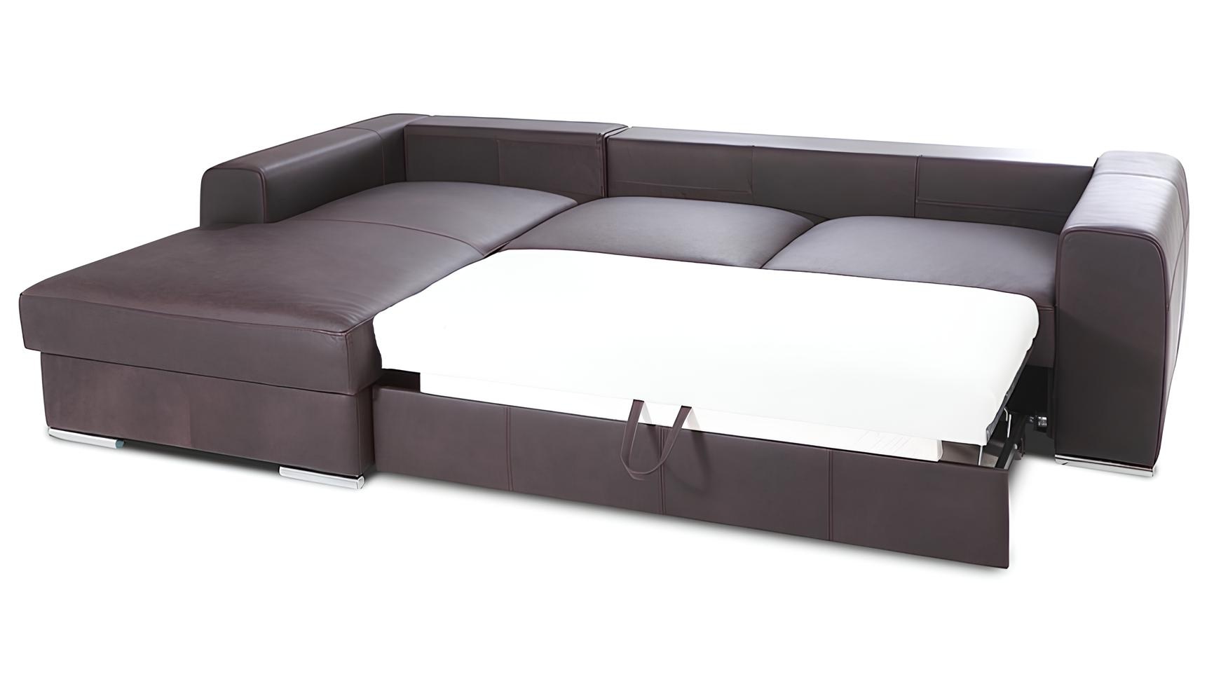 Moderná rohová sedacia súprava s koženým zakončením a funkciou postele