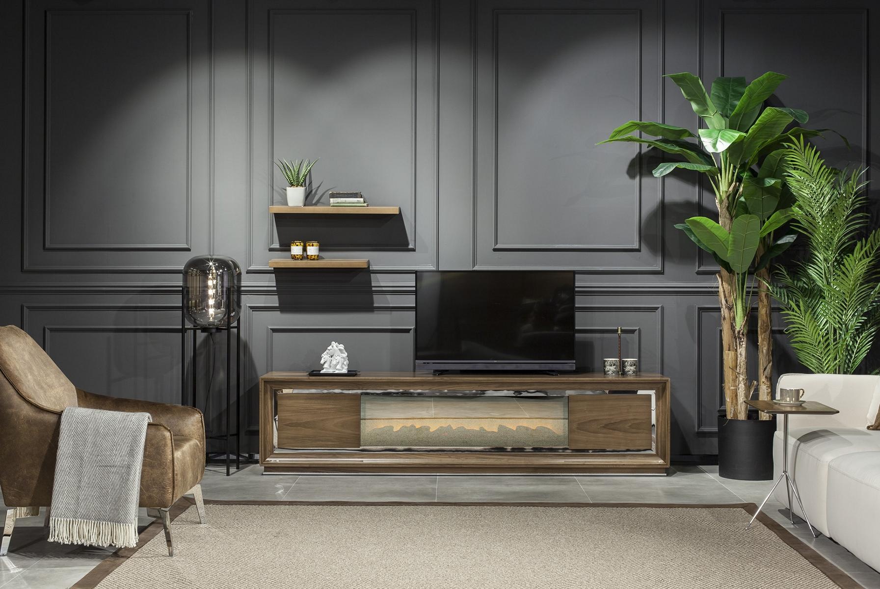 Mobilná TV skriňa predstavuje dokonalú harmóniu funkčnosti a estetiky. Jej elegantný hnedý povrch z kvalitného materiálu pridáva do vášho interiéru nádych luxusu, zatiaľ čo praktická konštrukcia zabezpečuje maximálnu variabilitu. S rozmermi, ktoré sú prispôsobené modernému životnému štýlu, ponúka dostatok priestoru na uskladnenie vašich technologických zariadení a dekoratívnych prvkov. Vytvorená pre tých, ktorí si cenia exkluzivitu, táto skriňa je viac než len kus nábytku; je to vyjadrenie životného štýlu, ktorý sa zameriava na kvalitu a sofistikovanosť. Doplní vašu obývaciu izbu s noblesou, ktorá zanechá dojem.