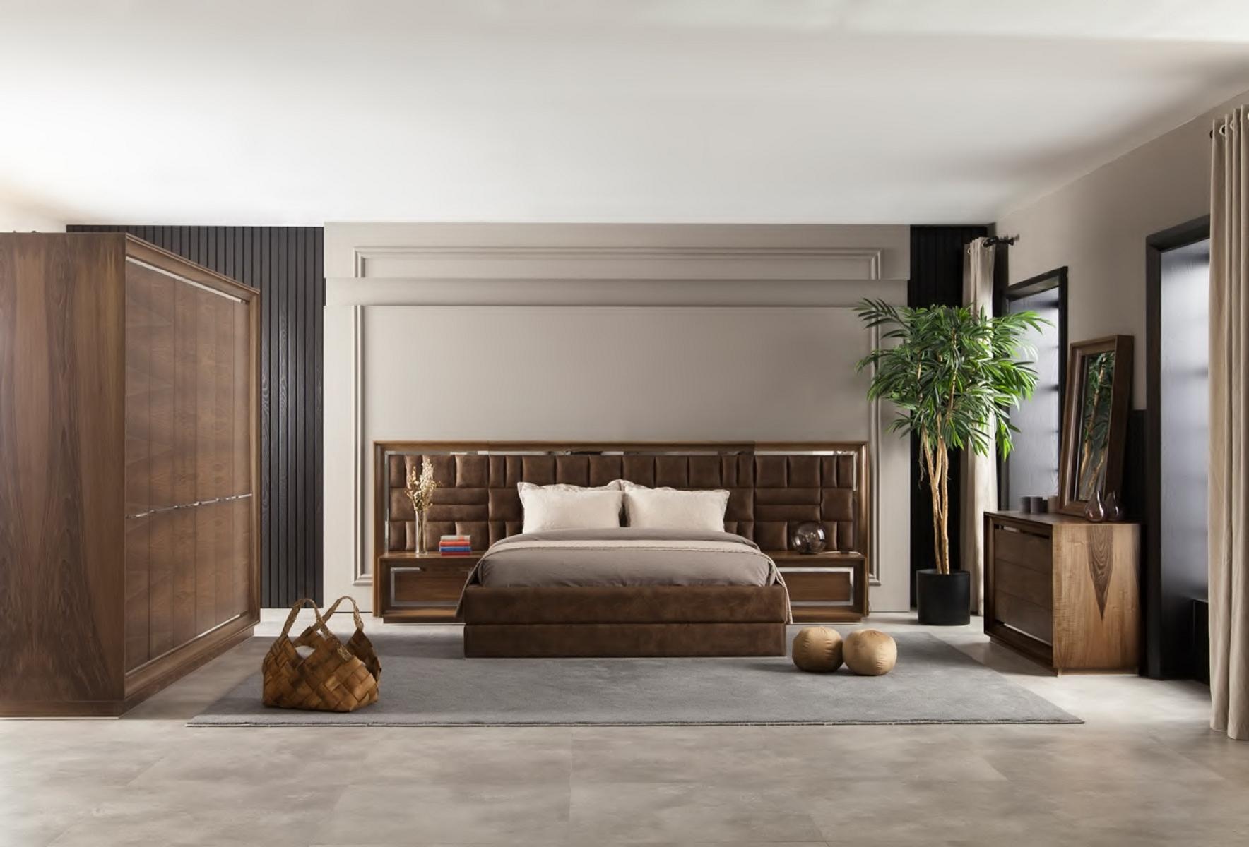 Ideálny dekor do spálne s skriňou, nočným stolíkom a posteľou v 5 častiach predstavuje dokonalú harmóniu elegancie a funkčnosti. Tieto nádherne navrhnuté kusy nábytku v hnedých odtieňoch vytvárajú teplú a útulnú atmosféru, ktorá pozdvihne každý interiér. Skriňa s dostatkom úložného priestoru, nočný stolík s precíznymi detailmi a posteľ, ktorá ponúka nielen pohodlie, ale aj štýlový vzhľad, zaručujú výnimočný zážitok z bývania. Tento nábytok, zhotovený z kvalitných materiálov, je odrazom exkluzívneho životného štýlu. S viac než 20-ročnou tradíciou v oblasti luxusného nábytku, táto kolekcia je ideálnou voľbou pre tých, ktorí si cenia dokonalosť a eleganciu vo svojom domove.