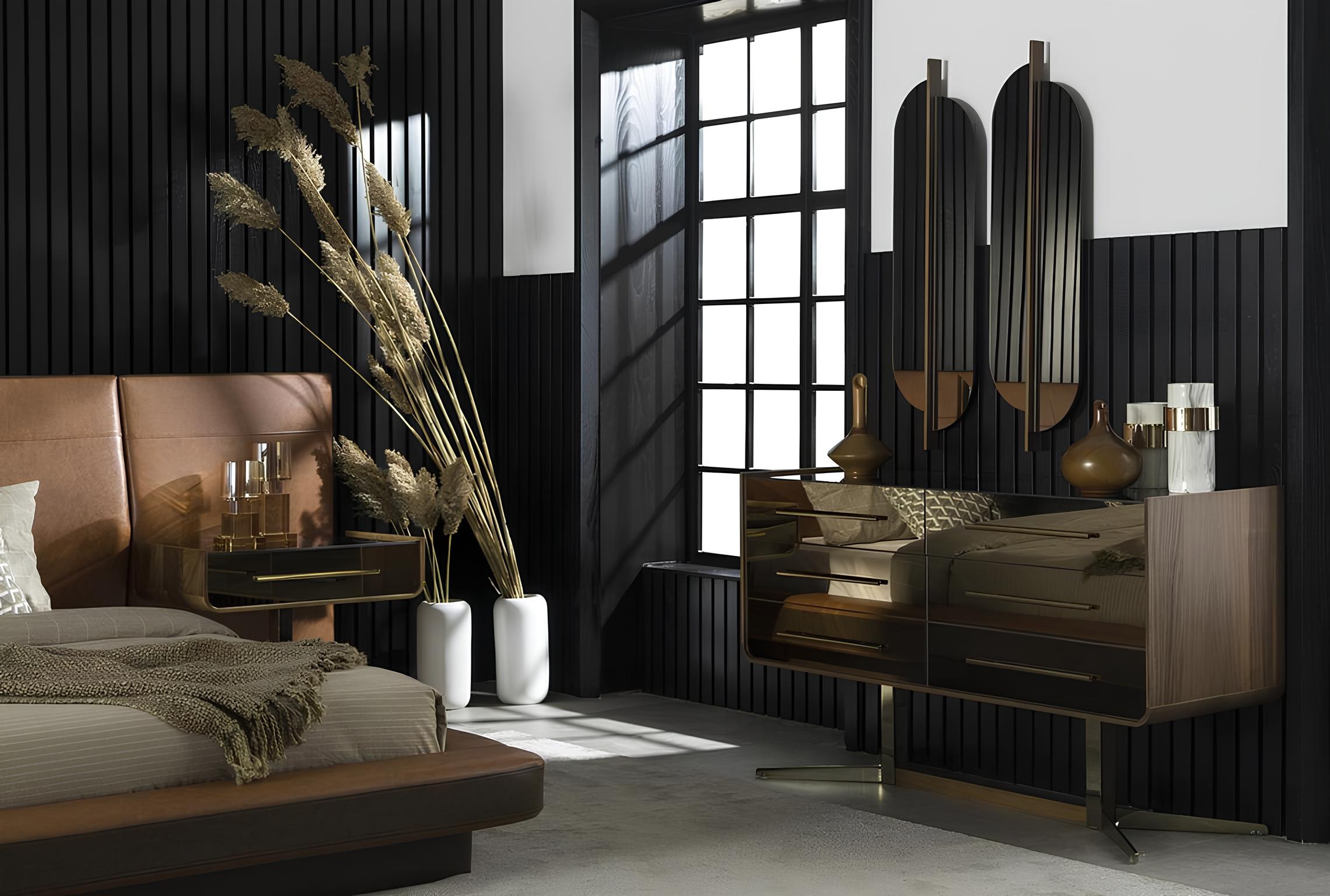 Kompletná spálňová nábytková súprava, pozostávajúca z postele, nočnej skrinky a skrine, je dokonalým vyjadrením elegance a luxusu. Vyrobená z kvalitného polyesteru v hnedých odtieňoch, táto súprava nielenže očarí svojím estetickým vzhľadom, ale aj poskytne neprekonateľný komfort. Jej premyslený dizajn harmonicky zapadne do každého exkluzívneho interiéru, pričom vytvorí atmosféru pokoja a rafinovanosti. Každý kus bol starostlivo navrhnutý tak, aby vyhovoval náročným požiadavkám moderného života, pričom zachováva nadčasovú krásu. Investujte do tejto súpravy a premeňte svoju spálňu na oázu luxusu, ktorá odráža váš vybraný životný štýl.