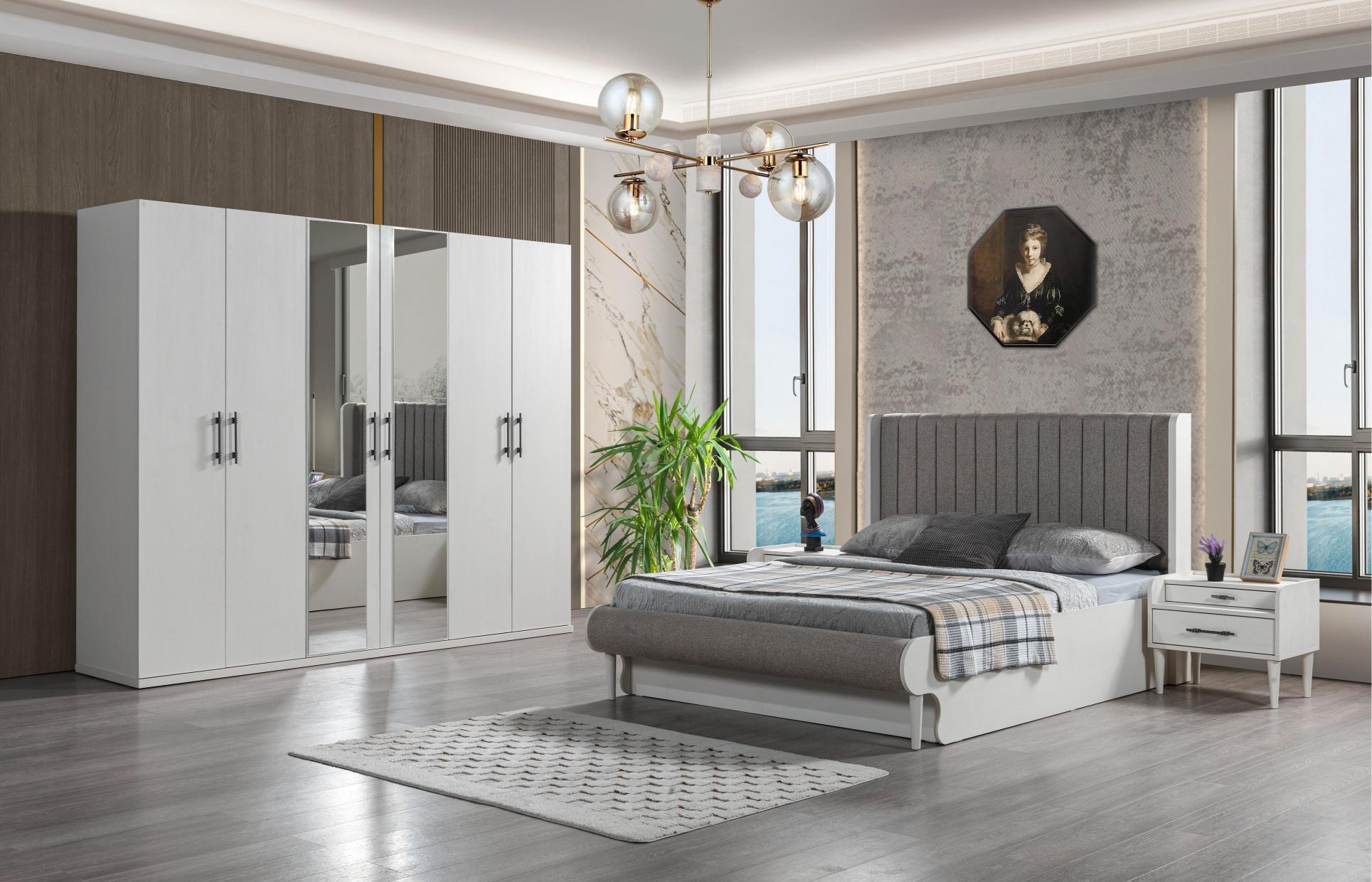 Sada s 4 dielmi do spálne ponúka dokonalú harmóniu elegancie a funkčnosti. Obsahuje priestrannú posteľ, elegantnú skriňu a sofistikovaný nočný stolík, všetko v nadčasovej sivej farbe, ktorá vnáša do interiéru pokoj a štýl. Každý kus je precízne vyrobený z kvalitných materiálov, ktoré zabezpečujú dlhú životnosť a nadštandardný komfort. Tento nábytok, kombinujúci moderný dizajn s klasickými prvkami, je ideálnym doplnkom pre tých, ktorí si potrpia na detailoch a žijú v súlade s exkluzívnym životným štýlom. Vytvorte si jedinečný priestor, ktorý odráža vašu osobnosť a vkus.