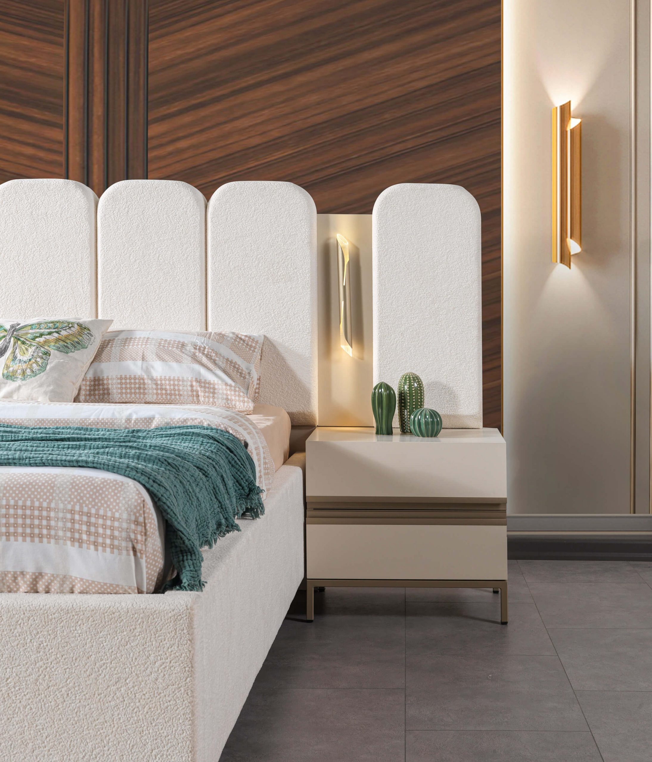Elegantná nočná skrinka je dokonalým doplnkom do vašej spálne, ktorá spája praktickosť s nadčasovým štýlom. Jej rozmery 58 x 42 x 52 cm sú ideálne pre kompaktné priestory, zatiaľ čo béžová farba dodáva interiéru jemnosť a sofistikovanosť. Vyrobená z kvalitných materiálov, táto skrinka zaručuje dlhú životnosť a odolnosť voči času. S elegantným dizajnom, ktorý sa hodí do každého luxusného prostredia, ponúka dostatok úložného priestoru na osobné predmety. Vyberte si túto nočnú skrinku a obohatíte svoj domov o prvok exkluzivity, ktorý odráža váš jedinečný životný štýl.