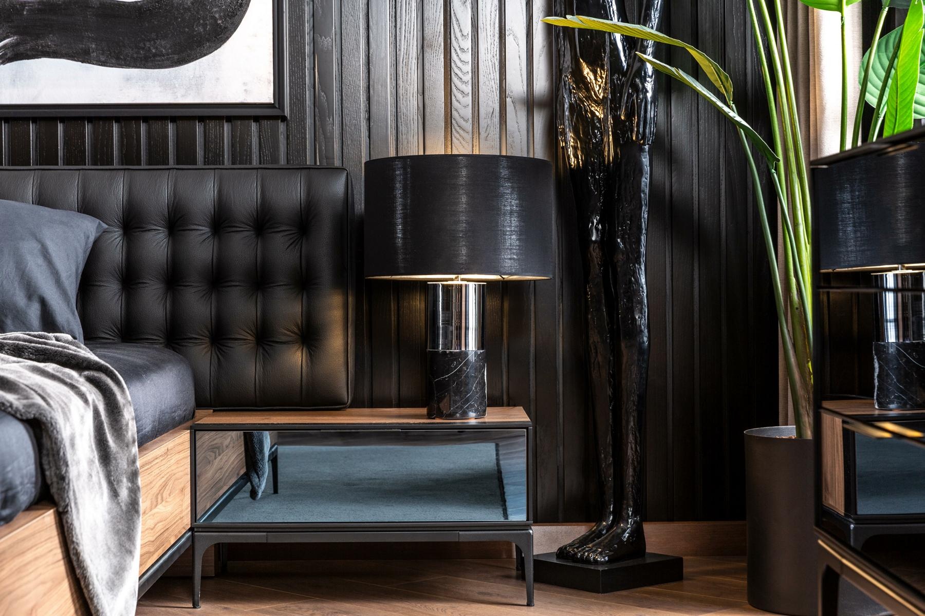 Luxusná nočná skrinka s hnedými sklenenými dverami predstavuje dokonalú harmóniu elegance a funkčnosti. Jej čierna povrchová úprava zaručuje štýlový a moderný vzhľad, zatiaľ čo hnedé sklenené dvere pridávajú nádych sofistikovanosti. Tento kúsok nábytku je navrhnutý s dôrazom na detail a kvalitu, čím odráža 20-ročnú tradíciu našej značky v oblasti luxusného nábytku. Skrinka ponúka dostatok úložného priestoru, pričom jej elegantný dizajn dopĺňa exkluzívnu atmosféru vášho domova. Vyberte si tento výnimočný kus a nechajte sa obklopiť luxusom, ktorý zodpovedá vášmu náročnému vkusu a životnému štýlu.