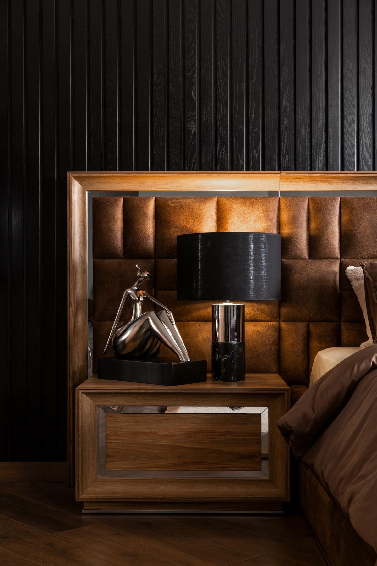 Luxusná nočná skrinka predstavuje dokonalú harmonizáciu funkčnosti a estetiky. Jej hnedá farba a precízne spracovanie z kvalitného materiálu dodávajú každej spálni nádych elegancie a sofistikovanosti. S rozmermi navrhnutými tak, aby zapadli do vášho priestoru, ponúka dostatok úložného priestoru pre osobné predmety, pričom zanecháva voľný priestor pre dekorácie. Tento kus nábytku, so zdôraznením na detaily, reflektuje exkluzívny životný štýl a dlhoročnú tradíciu značky, ktorá sa špecializuje na luxusný nábytok. Luxusná nočná skrinka je nielen praktickým doplnkom, ale aj umeleckým dielom, ktoré obohacuje atmosféru vášho domova.