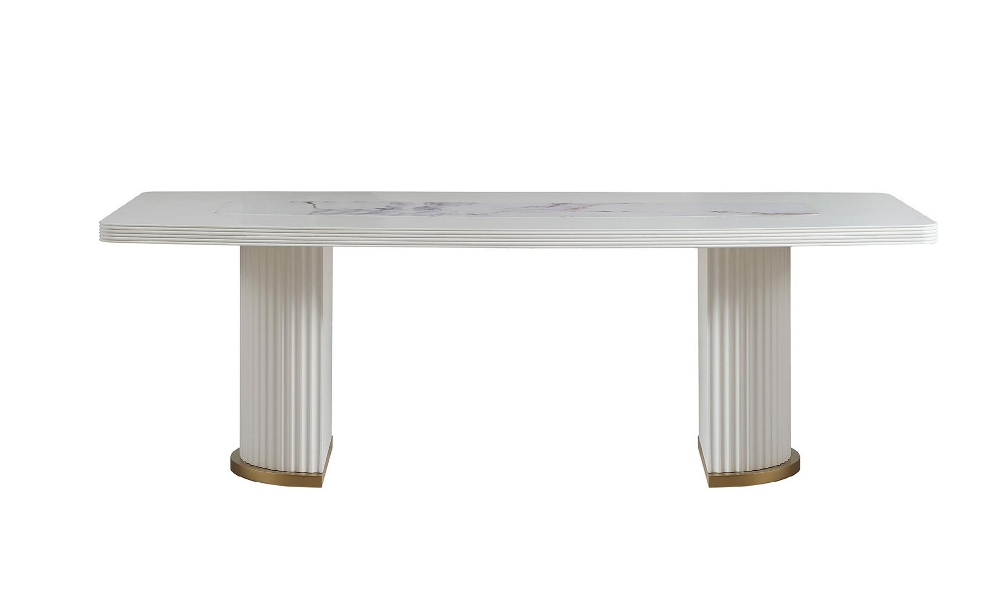 Luxusný jedálenský stôl moderný biely drevený jedálenský stôl predstavuje dokonalú harmonizáciu elegancie a funkčnosti. S rozmermi 240 x 100 x 78 cm ponúka dostatok priestoru pre nezabudnuteľné rodinné stretnutia a exkluzívne večere. Jeho čisto biely povrch, vyrobený z kvalitného dreva, dodáva interiéru nadčasový vzhľad, ktorý osloví aj tých najnáročnejších zákazníkov. Tento stôl nie je len kus nábytku; je to emblem luxusného životného štýlu a výraz vašej osobnosti. S viac ako 20-ročnou tradíciou v oblasti luxusného nábytku je zárukou, že investujete do kvality a štýlu, ktorý prežije generácie. Zvoľte si tento stôl a premeňte svoj domov na oázu výnimočnosti.