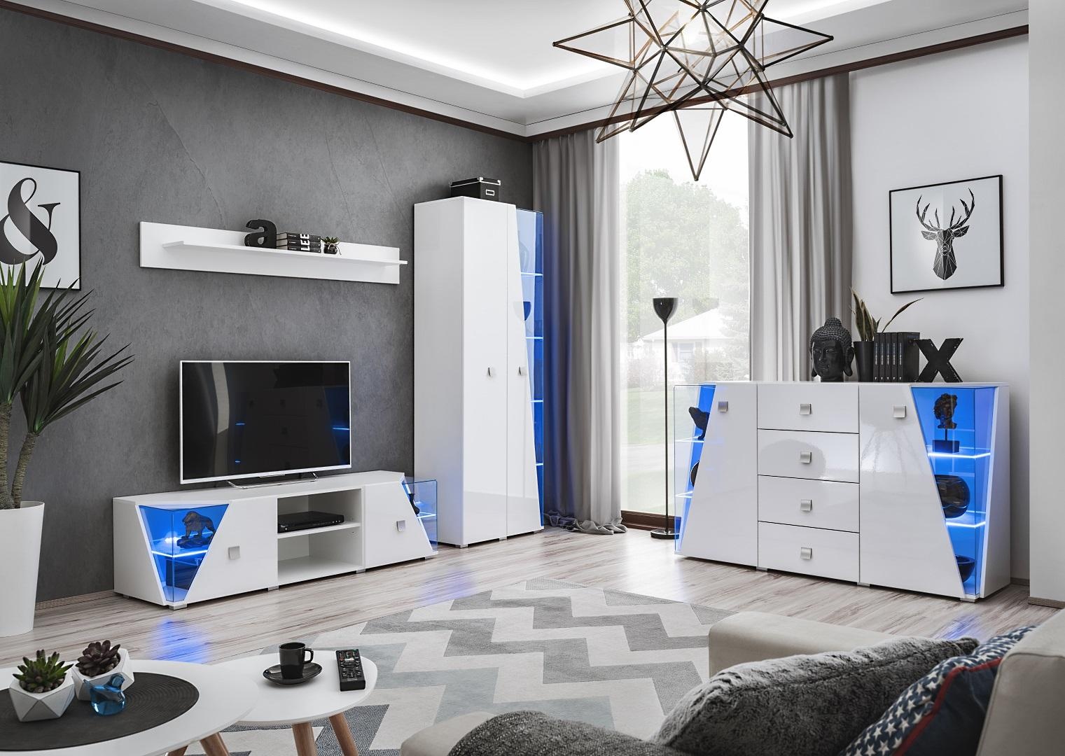 Moderná biela vitrína TV jednotka, 4-dielna sada, nová | xlnabytok.sk