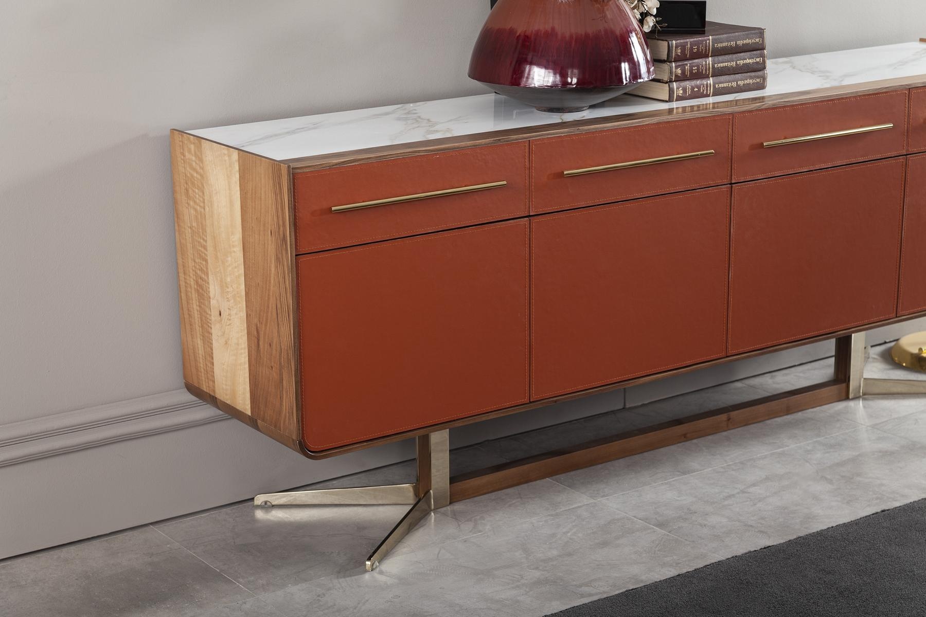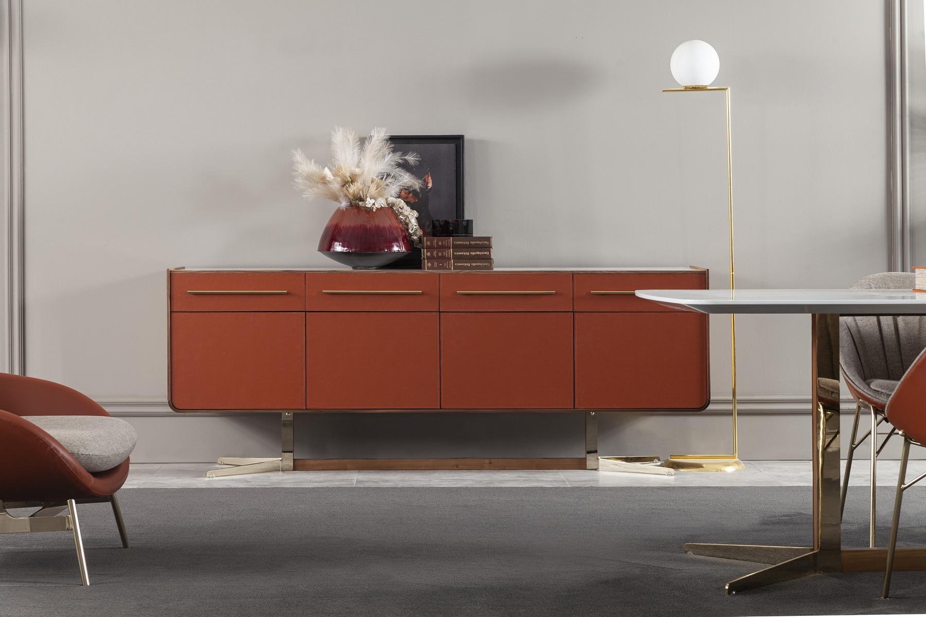 Oranžová komoda s zásuvkami a policami je majstrovským dielom, ktoré dokonale spája eleganciu a funkčnosť. S impozantnou dĺžkou 240 cm ponúka dostatok priestoru na uskladnenie a výnimočne navrhnuté detaily, ktoré oslovia aj najnáročnejších. Jej hnedá farba v kombinácii s kvalitným materiálom vytvára harmonický vzhľad, ktorý zvýrazňuje exkluzívnu atmosféru vášho interiéru. Tento XXL bufet je ideálnym doplnkom pre tých, ktorí hľadajú sofistikované riešenia pre svoje domovy. S viac ako 20-ročnou tradíciou v oblasti luxusného nábytku, táto komoda predstavuje symbol štýlu a prestíže, ktorý obohatí každý priestor.