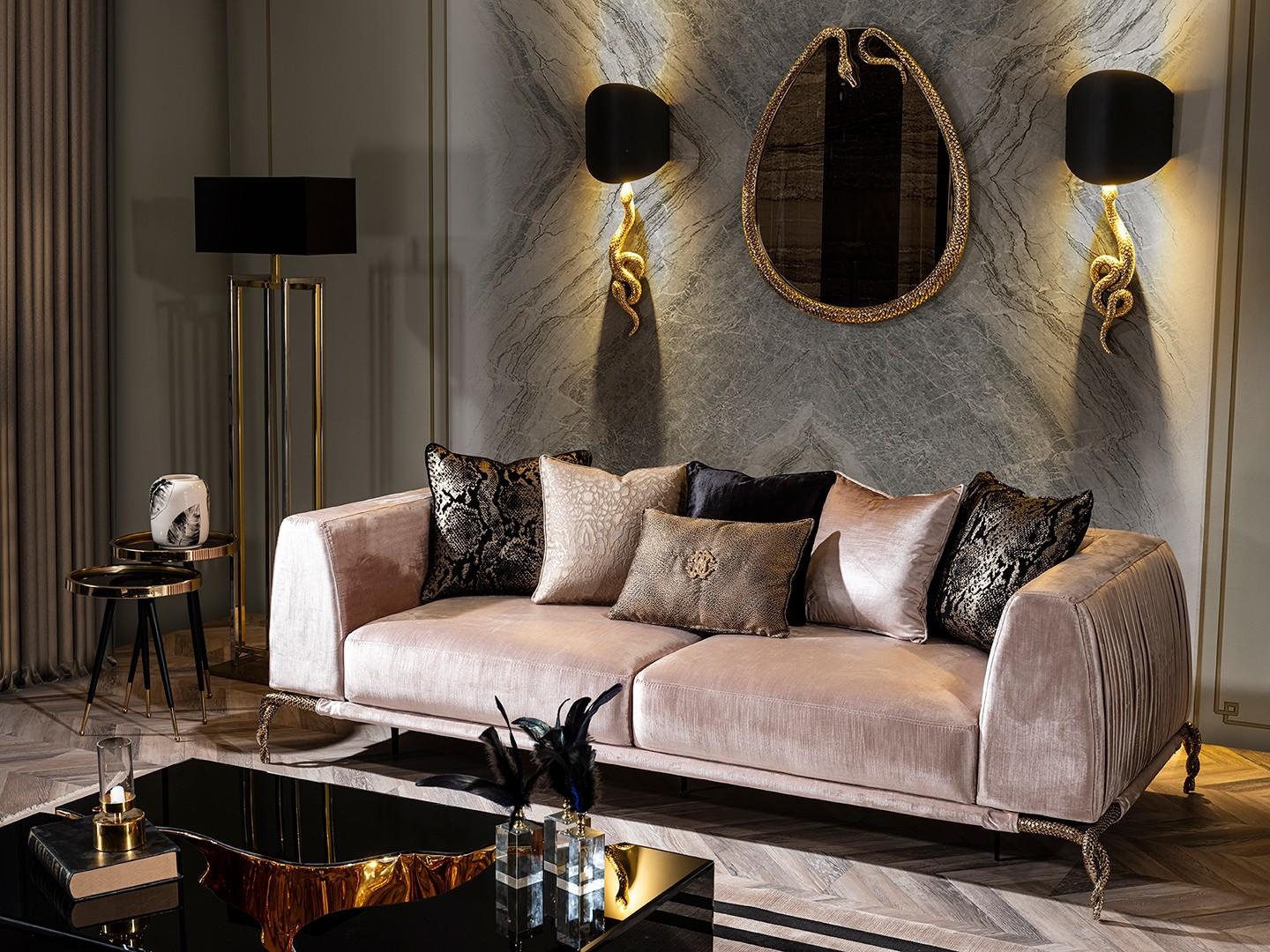 7-dielna súprava nábytku do obývacej izby s pohovkou, lampou, zrkadlom a pufom | xlnabytok.sk