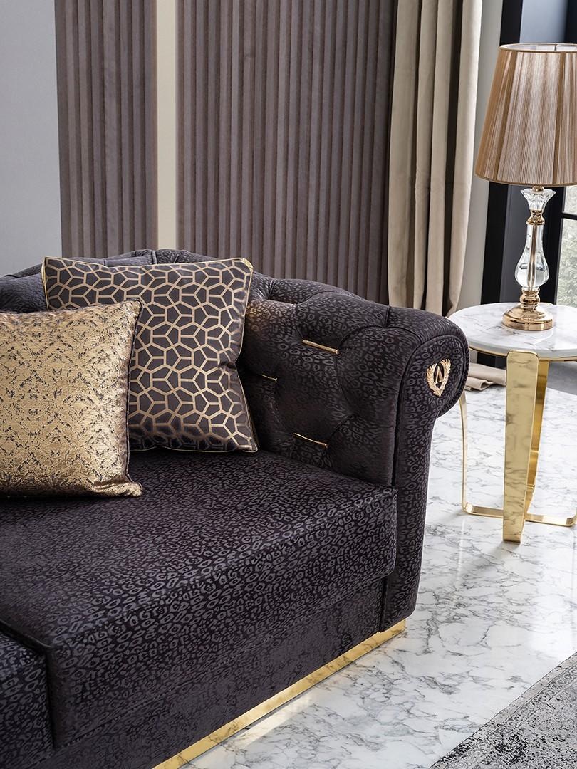 Pohovková sedačka s čalúnením 240 cm je dokonalým vyjadrením elegancie a nadčasového dizajnu. Jej impozantné rozmery 240 x 110 x 75 cm poskytujú dostatok priestoru pre relaxáciu a spoločenské stretnutia. Čierna polyesterová látka dodáva tomuto kusu sofistikovanosť a výnimočnú odolnosť, pričom sa skvele hodí do moderných aj klasických interiérov. Naša značka, s dvadsaťročnou tradíciou vo svete luxusného nábytku, ponúka široký výber prémiových dizajnov, ktoré dokážu premeniť váš domov na oázu komfortu a štýlu. Pohovková sedačka je nielen nábytok, ale aj symbol exkluzívneho životného štýlu. Vytvorte si priestor, ktorý odráža vašu jedinečnosť a náročnosť.