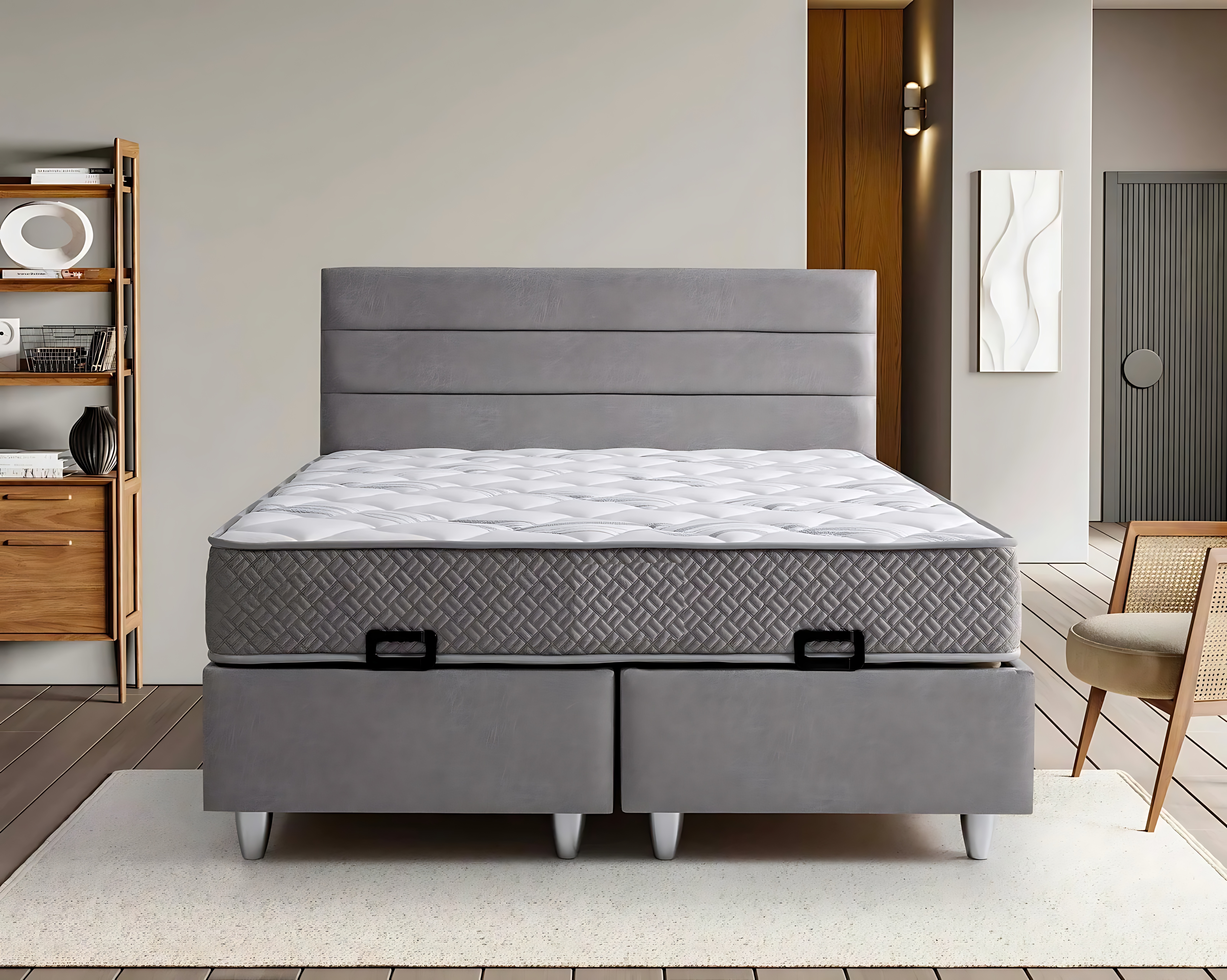 Elegantná posteľ z látky a dreva s matracom v sofistikovanej sivej farbe je vrcholom luxusu a pohodlia. Jej precízne spracovanie a kvalitné materiály zaručujú dlhú životnosť a nadčasový dizajn, ktorý sa dokonale hodí do každého exkluzívneho interiéru. Drevená konštrukcia poskytuje stabilitu, zatiaľ čo mäkká látka dodáva pocit útulnosti a elegance. Tento kus nábytku nielenže zvyšuje estetiku vášho domova, ale aj pozdvihuje každodenné spánkové rituály na novú úroveň. Investícia do tejto postele znamená výber životného štýlu, ktorý oslavuje kvalitu a vkus. Urobte z vášho spánku zážitok, ktorý si zaslúžite.