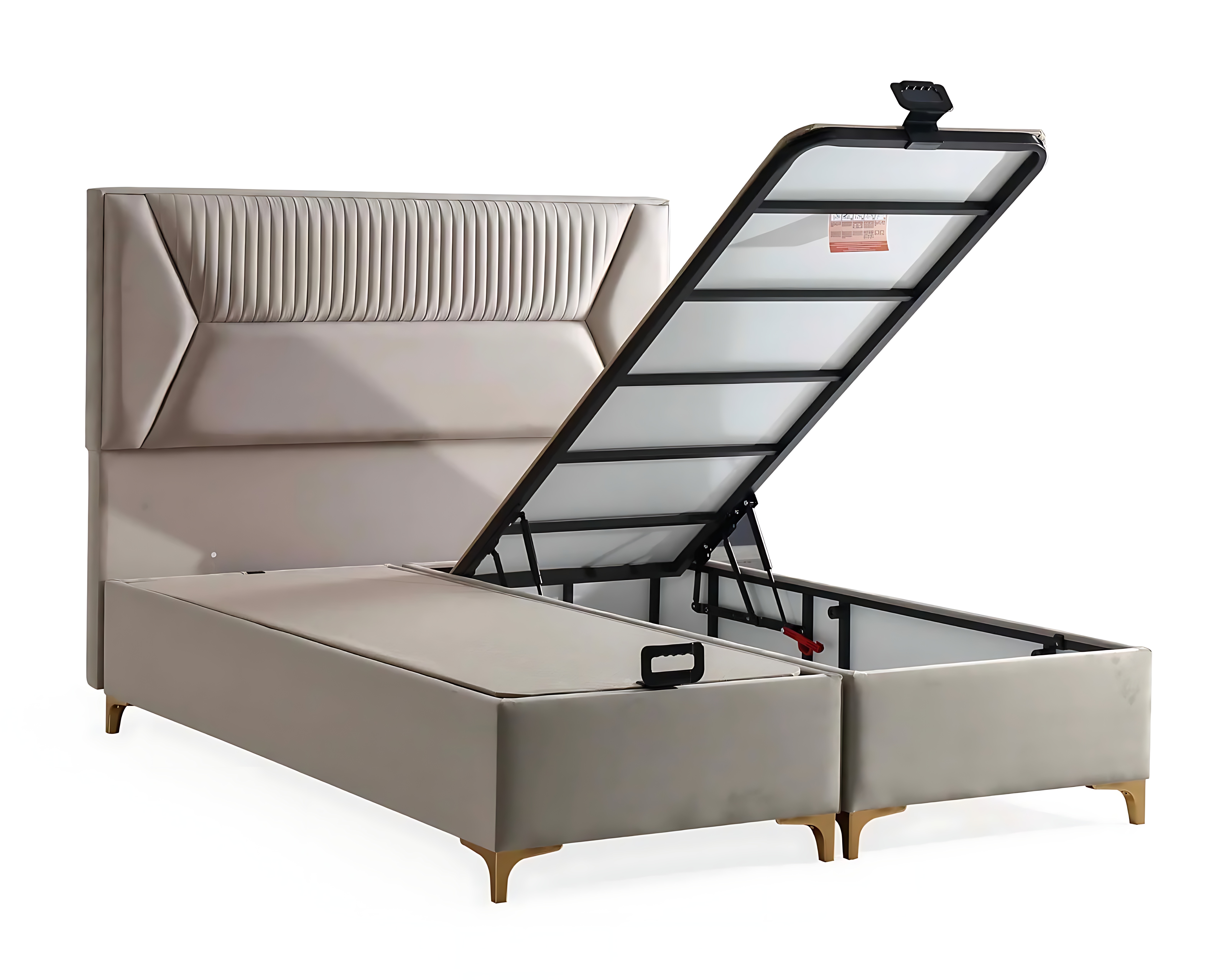 Posteľ v béžovej farbe s vankúšom z tkaniny a dreva je dokonalým vyjadrením elegancie a komfortu. Jej nadčasový dizajn harmonicky spája prírodné drevo a jemnú textíliu, čím vytvára atmosféru luxusu vo vašej spálni. Béžová farba, symbol sofistikovanosti, sa ľahko integruje do rôznych interiérových štýlov, pričom vnáša do priestoru pocit pokoja a útulnosti. Tento kus nábytku, navrhnutý s dôrazom na detail, ponúka nielen estetickú hodnotu, ale aj nesmierne pohodlie. Investícia do tejto postele znamená výber kvality a štýlu, ktorý odráža váš náročný vkus a exkluzívny životný štýl.
