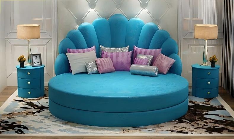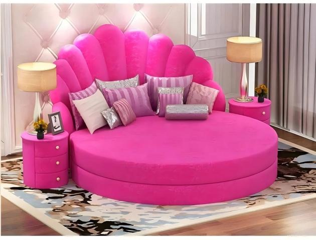 Elegantná okrúhla biela posteľ s fialovým zamatovým čalúnením je dokonalým stredobodom modernej spálne, ktorý zhmotňuje luxus a sofistikovanosť. Jej precízne spracovanie a použitie najkvalitnejších materiálov garantujú nielen estetický zážitok, ale aj dlhú životnosť. Biela textília vytvára čistý a nadčasový vzhľad, zatiaľ čo fialové zamatové čalúnenie dodáva nádych elegance a hrejivosti. Táto posteľ je navrhnutá tak, aby oslovila náročných zákazníkov, ktorí túžia po exkluzívnom životnom štýle a jedinečnej atmosfére vo svojich domovoch. Vyberte si tento luxusný kúsok a premeňte svoju spálňu na oázu pokoja a vkusu.