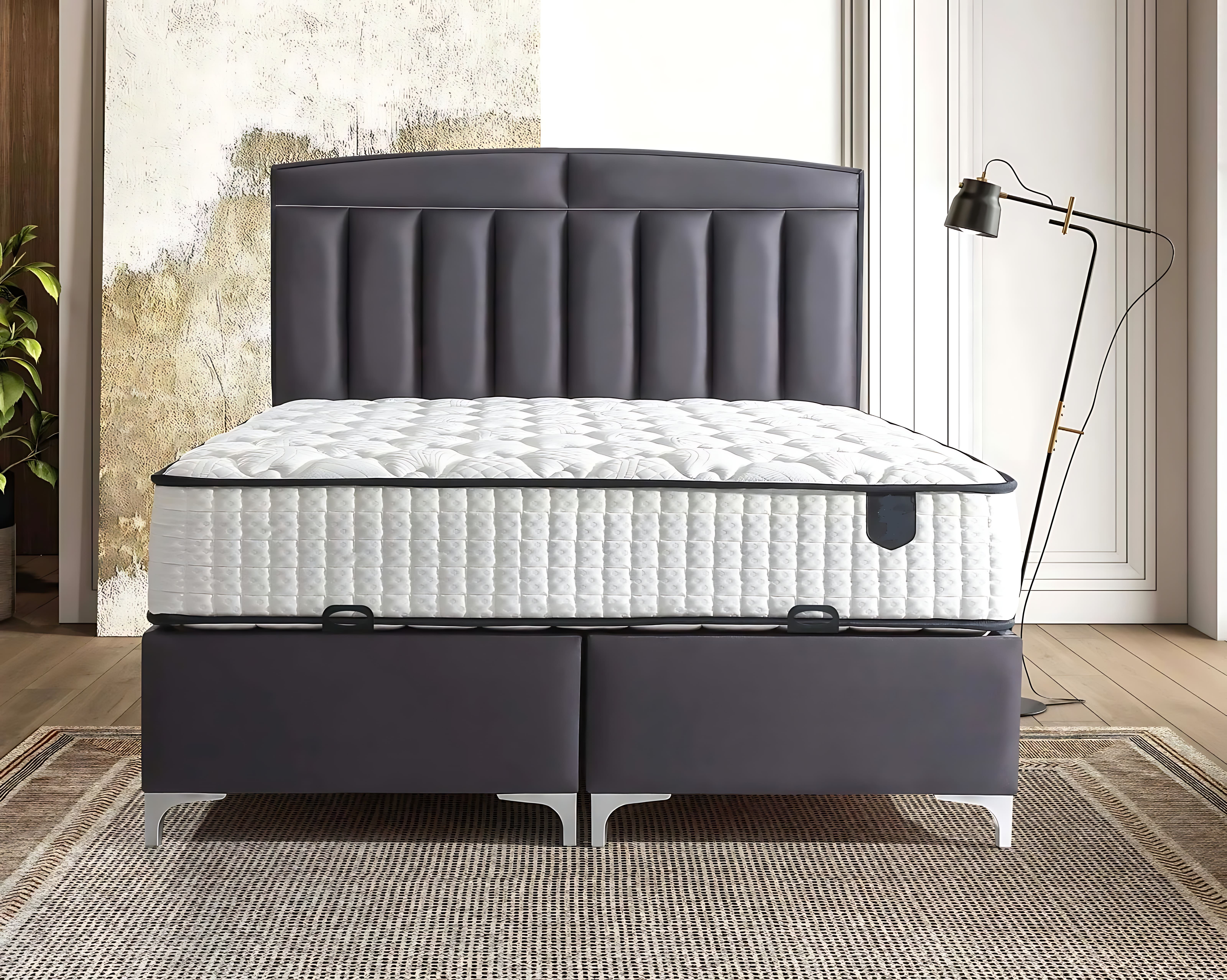 Sada moderných postelí s matracom predstavuje vrchol elegance a pohodlia, ktorý obohatí vašu spálňu o nezameniteľný nádych luxusu. Vyrobená z kvalitného sivého dreva, táto súprava ponúka harmonickú kombináciu dizajnu a funkčnosti, ktorá dokonale zapadá do súčasného trendu. Každý detail je starostlivo premyslený, aby zabezpečil maximálne pohodlie a estetický zážitok. Matrac je navrhnutý tak, aby podporoval optimálny spánok, čím prispieva k vašej pohode a revitalizácii. S touto exkluzívnou sadou sa vaša spálňa stane oázou pokoja a štýlu, odrážajúc váš vkus a životný štýl. Investujte do nadčasovej krásy, ktorá prekonáva trendy a ponúka nadpriemerný komfort.