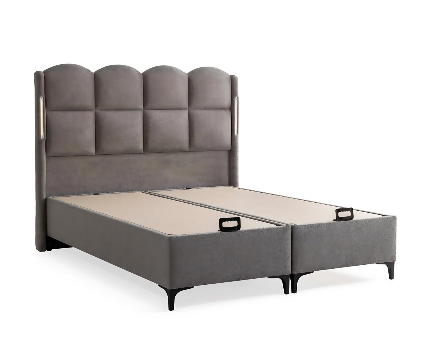 Sivá posteľ s vankúšmi z textílie a dreva predstavuje dokonalé spojenie moderného dizajnu a nadčasovej elegancie. Jej sofistikovaná sivá farba a kvalitné drevené akcenty dodávajú interiéru jedinečný charakter, ktorý osloví aj tých najnáročnejších. Posteľ je navrhnutá tak, aby zabezpečila maximálny komfort a podporila relaxačnú atmosféru vo vašej spálni. S jemnými vankúšmi z luxusnej textílie ponúka ideálne prostredie pre odpočinok a regeneráciu. Tento kúsok nábytku sa dokonale hodí do exkluzívneho domova, kde sa spája štýl s funkčnosťou. Investícia do tejto postele je investíciou do vášho životného štýlu a pohodlia.
