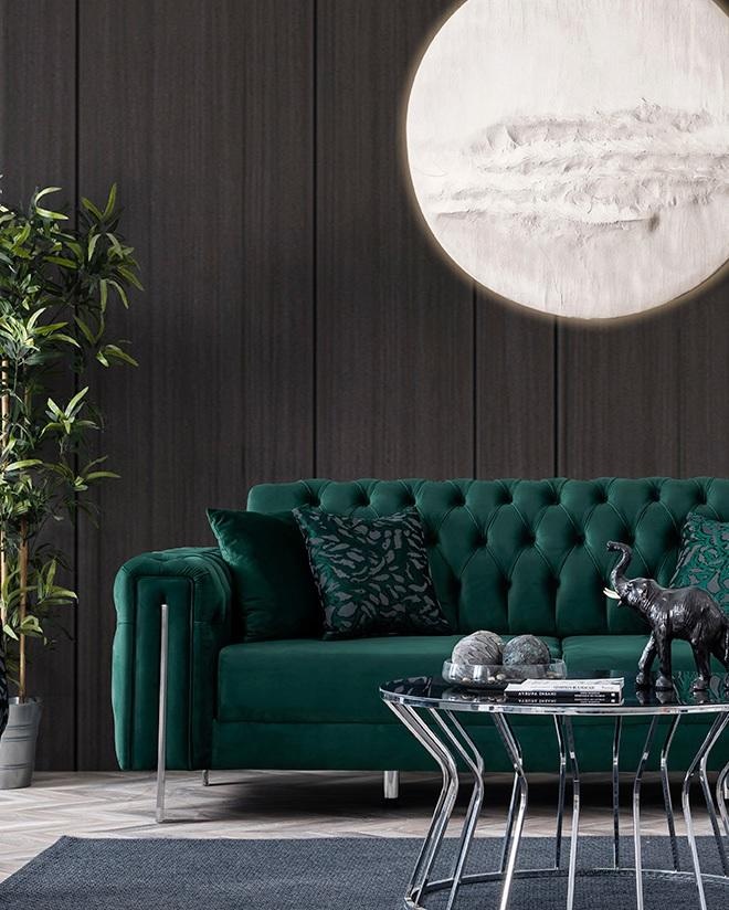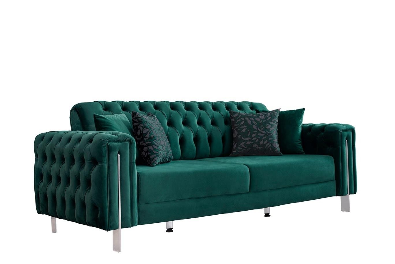 Trojmiestny textilný gauč moderného dizajnu predstavuje dokonalú harmóniu elegance a komfortu. S rozmermi 228 x 98 x 85 cm sa stáva stredobodom pozornosti vo vašej obývacej izbe. Jeho bohatá zelená farba z polyesterového materiálu nielenže vnáša do interiéru sviežosť, ale aj vytvára luxusný pocit. Tento gauč, ktorý reflektuje dvadsaťročnú tradíciu našej značky v oblasti luxusného nábytku, je ideálnou voľbou pre tých, ktorí túžia po exkluzívnom životnom štýle. S precíznou remeselnou prácou a nadčasovým dizajnom je tento kus nábytku nielen funkčný, ale aj výnimočne estetický, zaručujúci, že vaše domáce prostredie bude vždy pôsobiť sofistikovane.