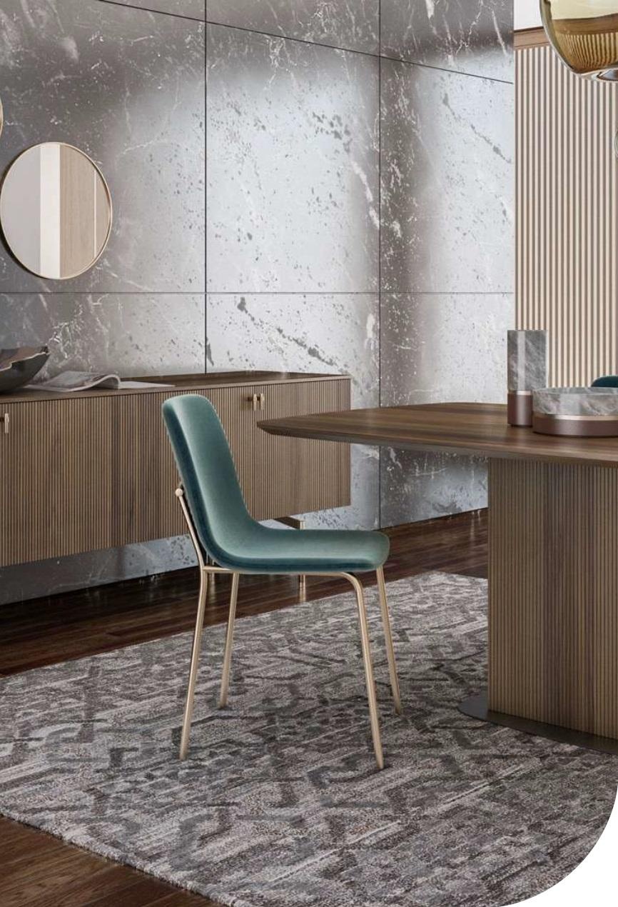 Luxusná moderná jedáleň je zhmotnením rafinovanej elegancie a nadčasového štýlu. Jej precízne spracovanie z kvalitného dreva v kombinácii so zeleným polyesterom vytvára harmonický kontrast, ktorý osvieži každý priestor. Každý detail bol premyslene navrhnutý, aby ponúkol nielen estetický pôžitok, ale aj nadštandardnú funkčnosť. Tento nábytok je ideálnym doplnkom pre tých, ktorí vyžadujú výnimočnosť a komfort vo svojej domácnosti. S viac ako 20-ročnými skúsenosťami v oblasti luxusného nábytku, táto jedáleň predstavuje investíciu do životného štýlu, ktorý sa vyznačuje kvalitou, exkluzivitou a jedinečným dizajnom.