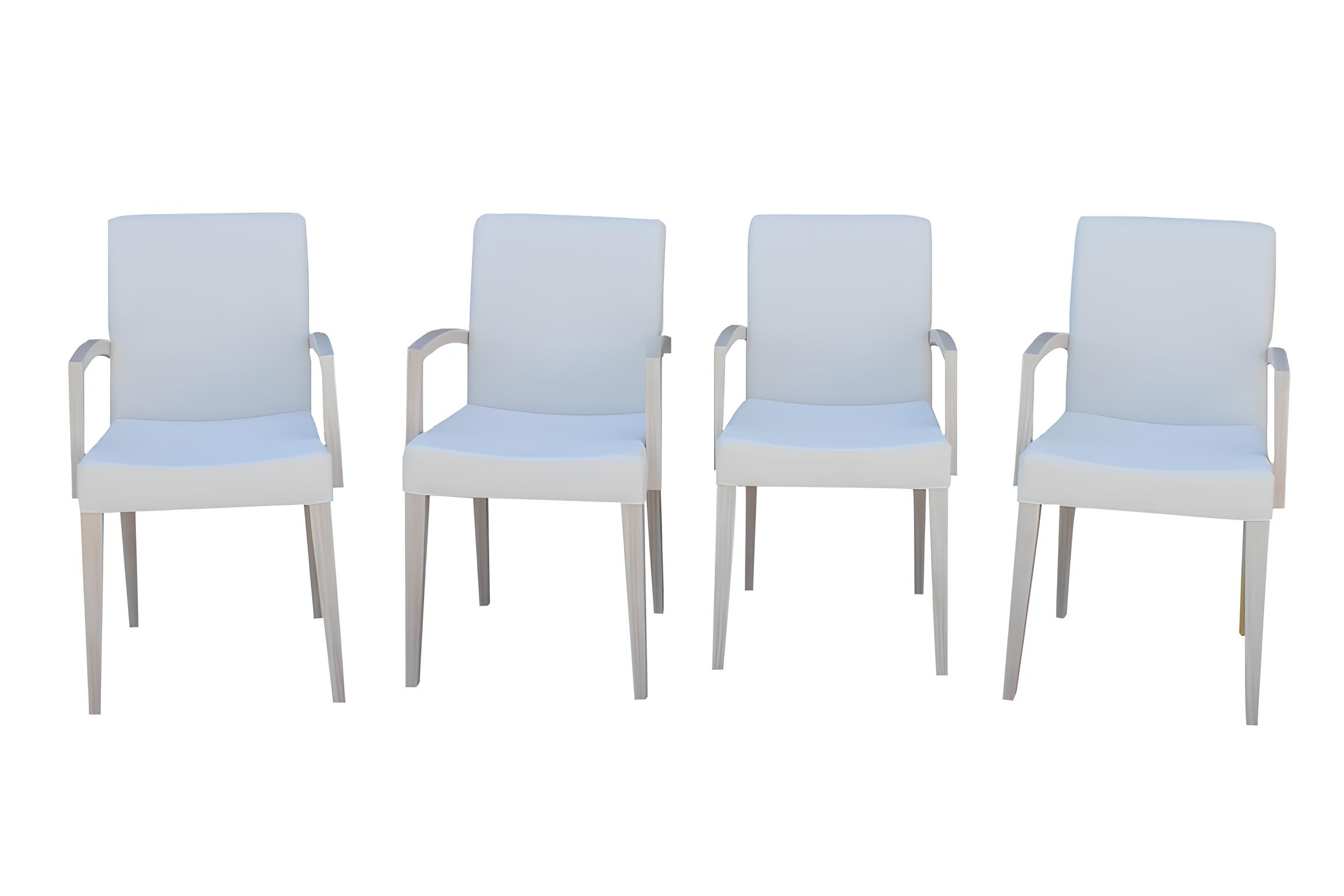 Moderná jedálenská súprava s rukoväťami, 4x nová, predstavuje dokonalú harmonizáciu elegancie a funkčnosti. Jej rozmer 50 * 47 * 86 cm je ideálny pre vytvorenie útulnej atmosféry bez obetovania štýlu. Biela syntetická koža, použitá na jej povrchu, nie je len vizuálne atraktívna, ale aj mimoriadne odolná, čo zabezpečuje dlhodobú krásu a jednoduchú údržbu. Tento kus nábytku sa stane centrom pozornosti vo vašej jedálni, pričom odráža váš náročný vkus a exkluzívny životný štýl. S viac ako dvadsiatimi rokmi skúseností v oblasti luxusného nábytku, táto súprava je skutočným vyjadrením prestíže a dokonalosti.
