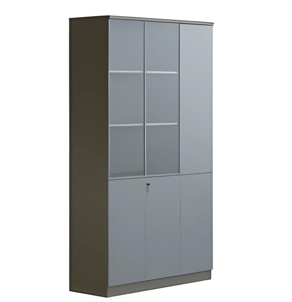 Moderná sivá kancelárska skriňa so sklenenými dverami, s zámkom, veľké úložisko